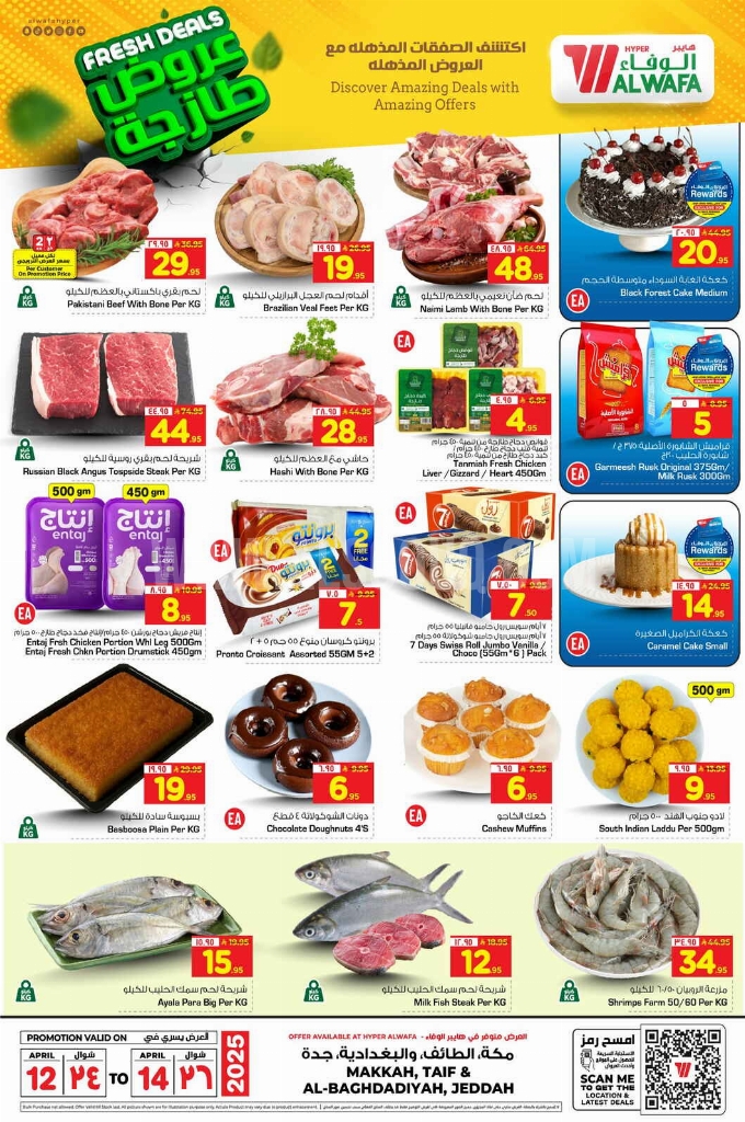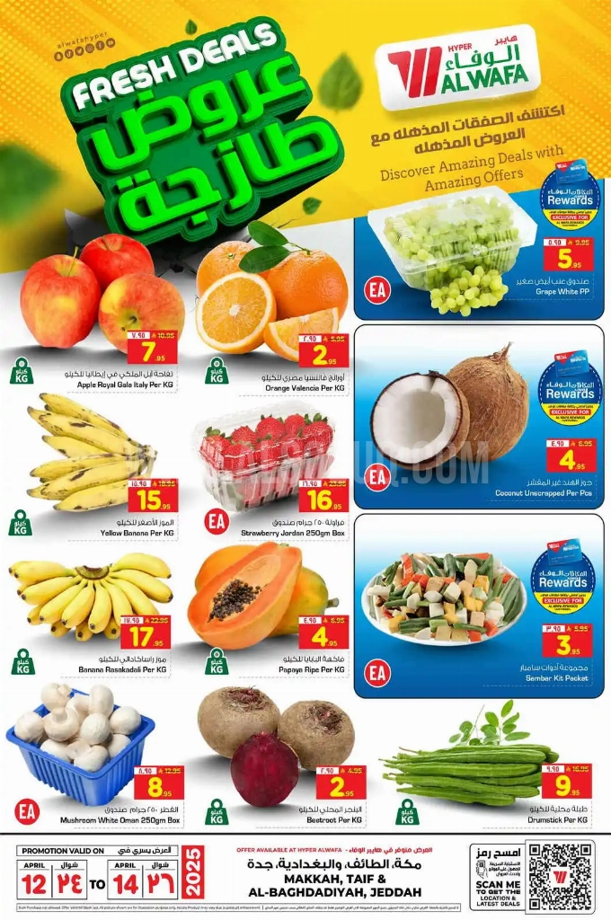 عروض الوفاء هايبر ماركت اليوم 12 أبريل 2026 الموافق 24 شوال 1447 عروض طازجة 3 أيام. تسوقوا الآن مجموعة من المنتجات المميزة المختارة بعناية بأسعار وقيمة تستحق التجربة وتمنحك أكثر مما تتوقع.
