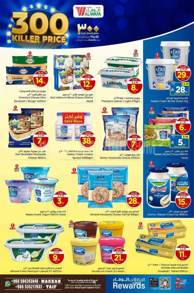 عروض الوفاء هايبر ماركت اليوم 7 يناير 2026 الموافق 18 رجب 1447 300 منتج باسعار نارية. نهاية العام مع الطازج أحلى! تخفيضات على كل المنتجات الطازجة لتعيش تجربة تسوق ما بتنساها وتعيدها مرة ومرتين. لا تفوّت فرصة التوفير الأقصى! خصومات الكبرى على مستلزمات العائلة والسلع الأساسية متوفرة الآن. اغتنم أقوى تخفيضات الموسم على المنتجات اليومية، وابدأ التخطيط لميزانية منزلك بذكاء مع قيمة لا مثيل لها. عروض الوفاء هايبر ماركت اليوم: تجدون ضمن منتجات الأسبوع: طحينة المراعي (250 جرام). لبنة فاخرة المراعي كاملة الدسم (400 جرام). حليب المراعي طويل الأجل كامل / قليل الدسم (18×200 مل). حليب بروتين المراعي (400 مل). جبنة المراعي هيرتز طابوقة (454 جرام). وإليكم الصور الآتية على موقع عروض