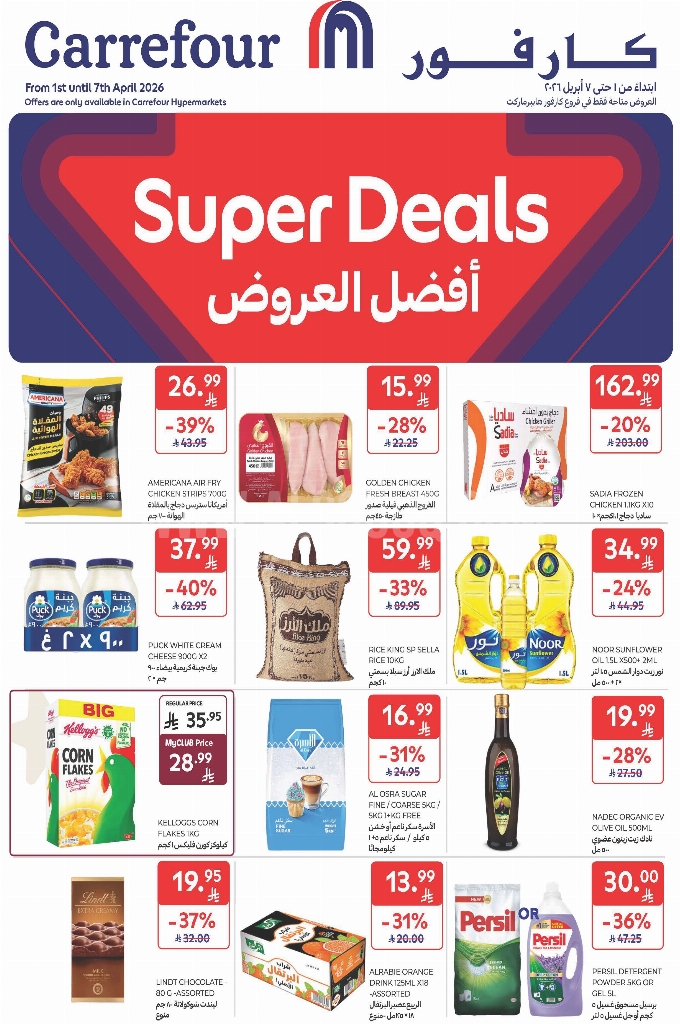 عروض كارفور السعودية الأسبوعية 1 أبريل 2026 الموافق 13 شوال 1447 أقوى العروض. تسوقوا الآن مجموعة من المنتجات المميزة المختارة بعناية بأسعار وقيمة تستحق التجربة وتمنحك أكثر مما تتوقع.
