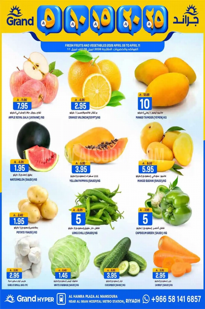 عروض جراند هايبر الأسبوعية 8 أبريل 2026 الموافق 20 شوال 1447 عروض الخمسات