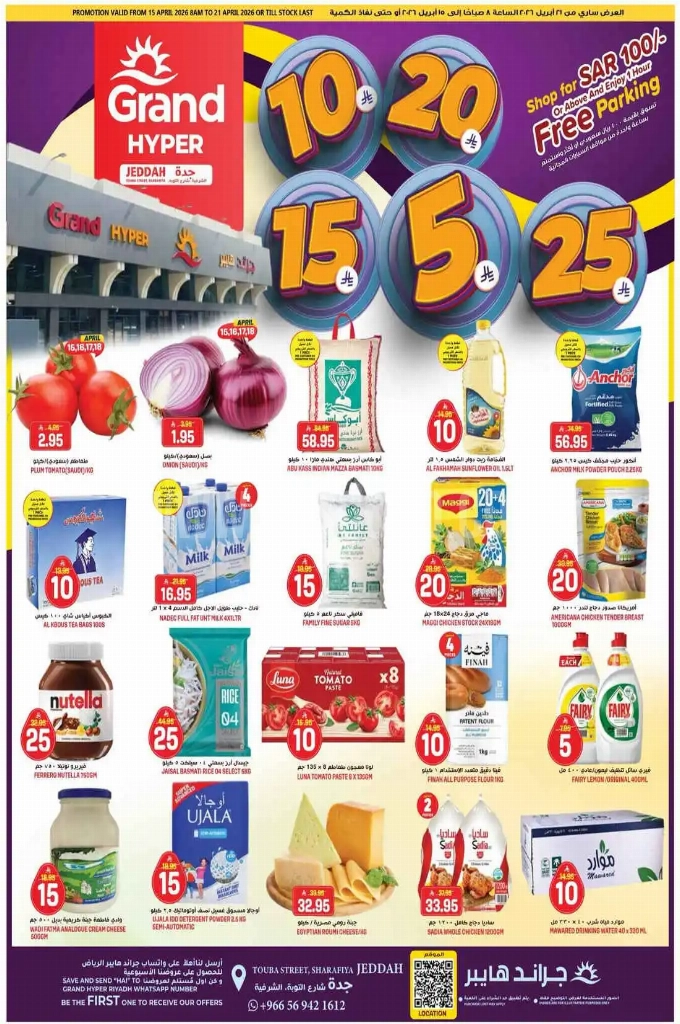 عروض جراند هايبر اليوم 15 أبريل 2026 الموافق 27 شوال 1447 5ــ10ــ15ــ20ــ25. تسوقوا الآن مجموعة من المنتجات المميزة المختارة بعناية بأسعار وقيمة تستحق التجربة وتمنحك أكثر مما تتوقع.