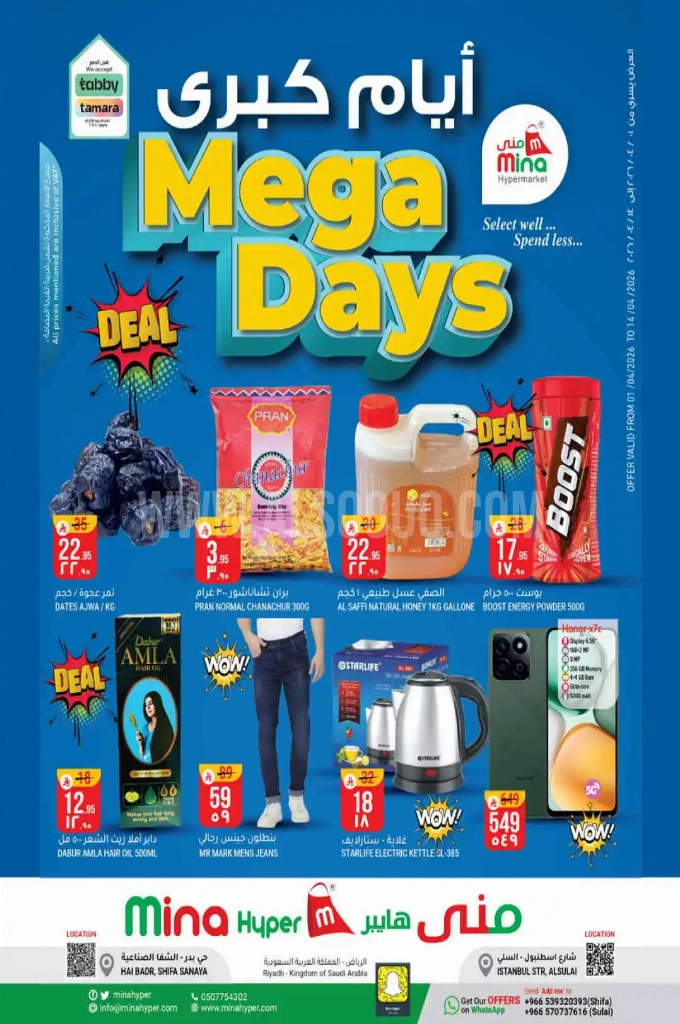 عروض منى هايبر الأسبوعية 8 أبريل 2026 الموافق 20 شوال 1447 عروض الأيام الكبرى. تسوقوا الآن مجموعة من المنتجات المميزة المختارة بعناية بأسعار وقيمة تستحق التجربة وتمنحك أكثر مما تتوقع.