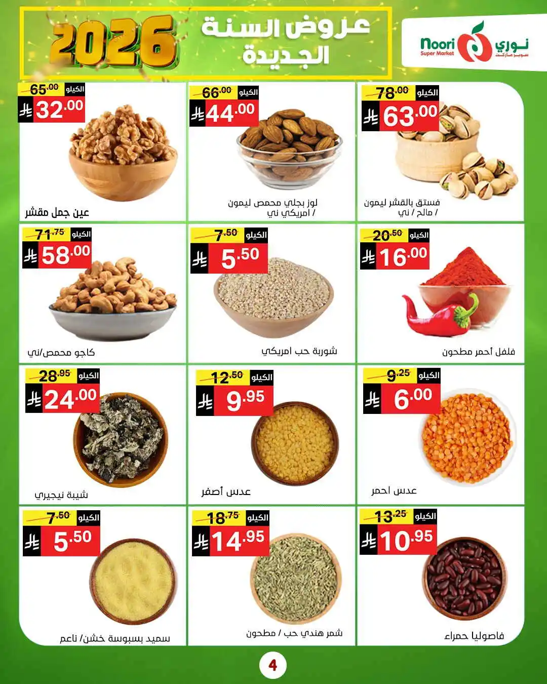 عروض نوري اليوم 5 يناير 2026 الموافق 16 رجب 1447 عروض السنة الجديدة. نهاية العام مع الطازج أحلى! تخفيضات على كل المنتجات الطازجة لتعيش تجربة تسوق ما بتنساها وتعيدها مرة ومرتين.