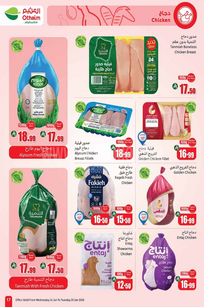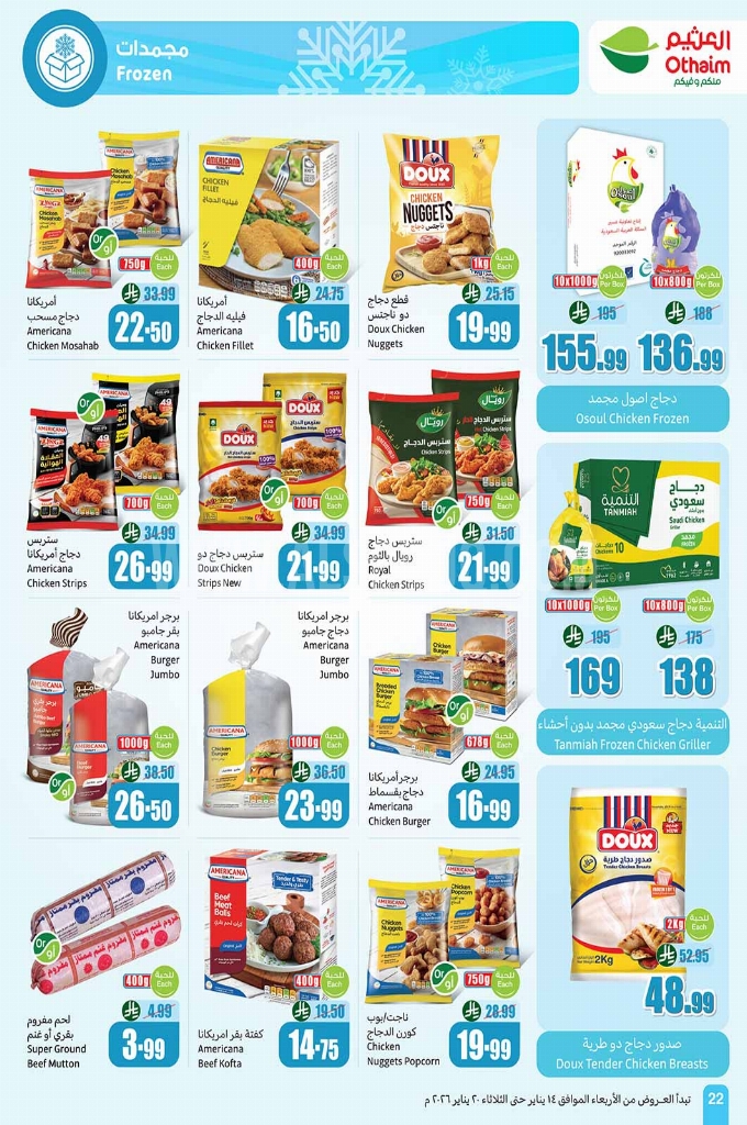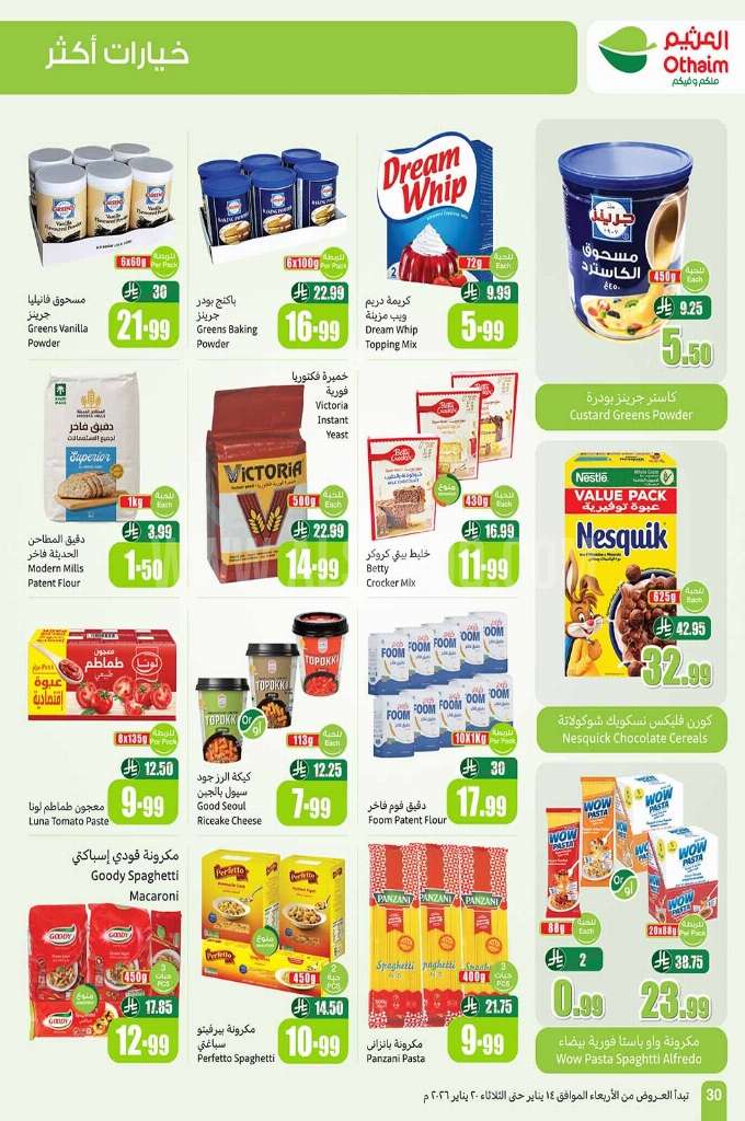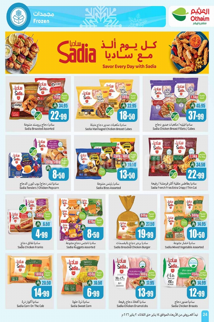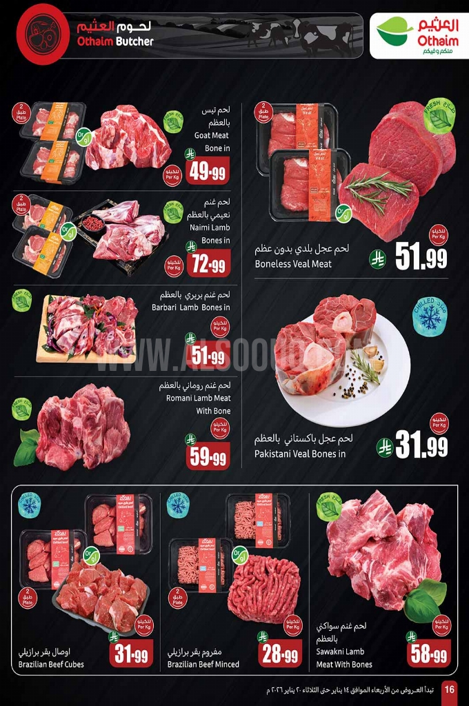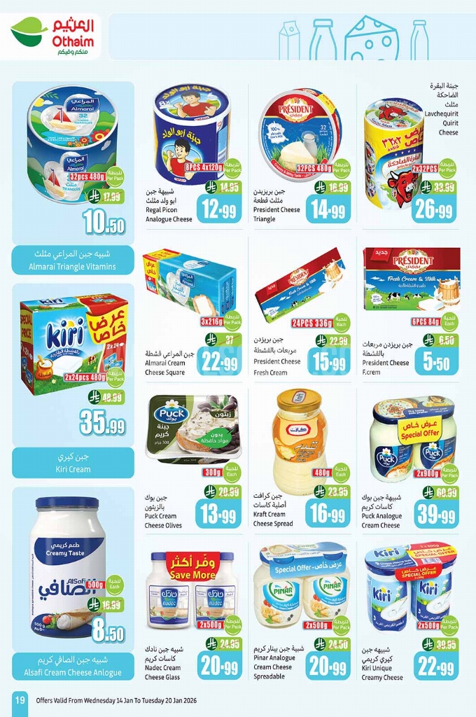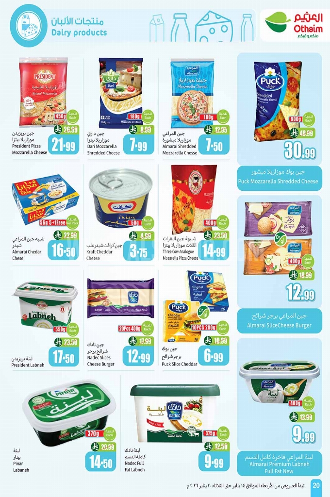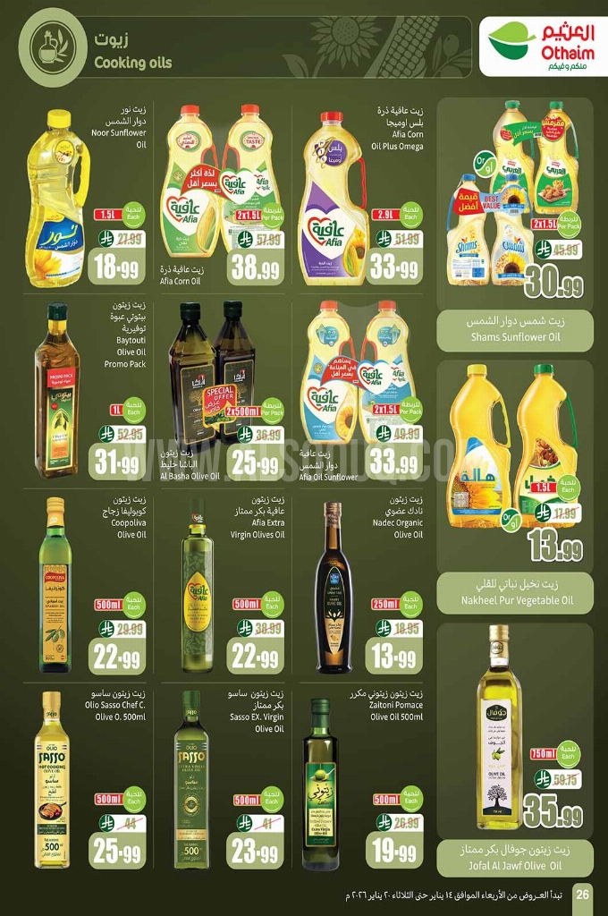 عروض العثيم الأسبوعية 14 يناير 2026 الموافق 25 رجب 1447 احسبها صح..كاشك في جيبك. انطلقوا في تجربة توفير ذكية على السلع الأساسية والمنتجات اليومية، مع عروض مدروسة وأسعار تنافسية تمنحكم قيمة حقيقية. عروض رمضان الكبرى بين يديك! اغتنم أقوى الحسومات على المستلزمات الأساسية واضمن توفيراً استثنائياً لكل احتياجات منزلك. لا تنتظر طويلاً، تسوق بذكاء منذ اليوم الأول واستفد من تخفيضاتنا الهائلة على كافة المنتجات التي تعتمد عليها يومياً بأسعار حطمّت التوقعات. عروض العثيم الرمضانية اليوم: بصمة جديدة لعام جديد. اكتشفوا ما اخترناه لكم ضمن منتجات اليوم المميزة منها: جبنة كريم الصافي، جبنة شرائح المراعي، جبنة حلومي الصافي، زبدة غير مملحة المراعي، لبنة كريمي الصافي، جبنة فيتا الصافي، وإليكم الصور الآتية على موقع عروض