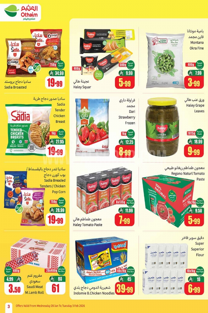 ابدؤوا تجربة توفير ذكية مع باقة اليوم من المنتجات المميزة التي انتقيناها خصيصاً لكم منها: دجاج كامل/فيليه صدور دجاج الوطنية (1000/450 جرام). شراب الفاكهة وادان (710 مل). خميرة فورية سريعة التحضير ساف (500 جرام). وإليكم الصور الآتية على موقع عروض