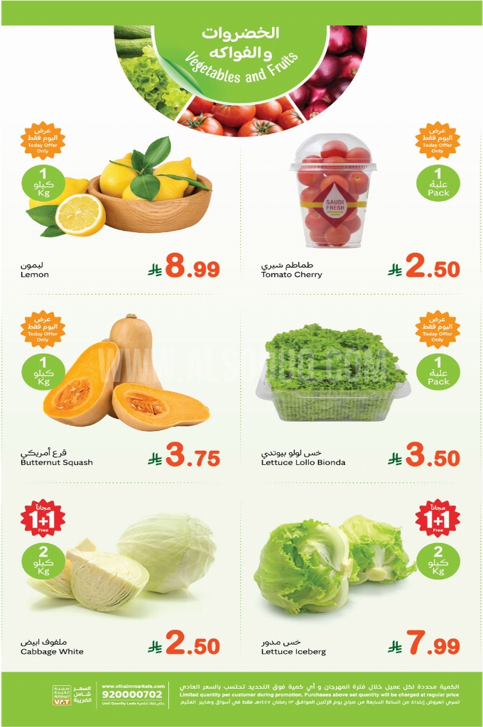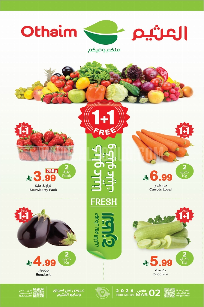 عروض العثيم اليوم الاثنين 1 مارس 2026 الموافق 12 رمضان 1447 مهرجان الطازج بتوفير 1+1 مجاناً