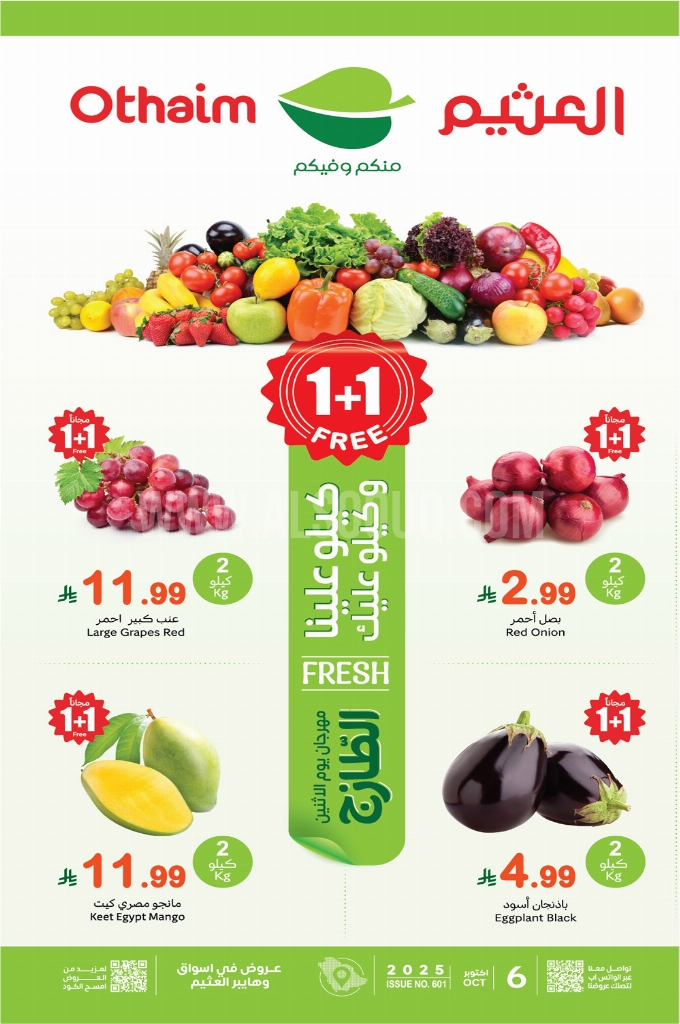 عروض العثيم اليوم الاثنين 6 أكتوبر 2025 الموافق 14 ربيع الآخر 1447 مهرجان الطازج بتوفير 1+1 مجاناً