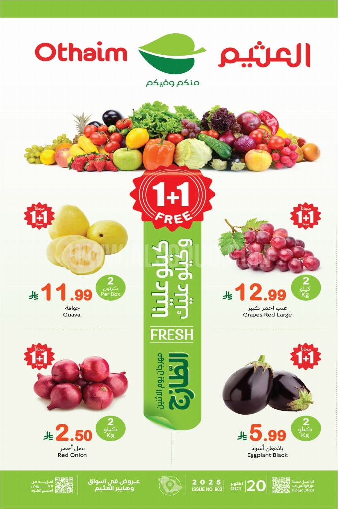 عروض العثيم اليوم 20 أكتوبر 2025 الموافق 28 ربيع الآخر 1447 مهرجان الطازج & 1+1 مجاناً