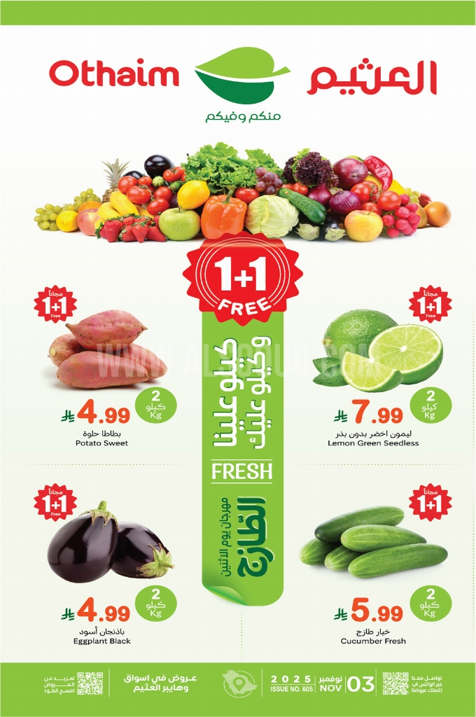 عروض العثيم اليوم 3 نوفمبر 2025 الموافق 12 جمادى الأولى 1447 مهرجان الطازج بتوفير 1+1 مجاناً
