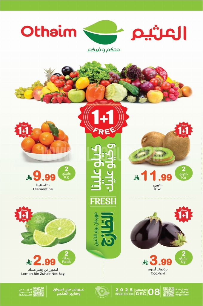 عروض العثيم ليوم الاثنين 8 ديسمبر 2025 الموافق 17 جمادى الآخر 1447 مهرجان الطازج & 1+1 مجاناً