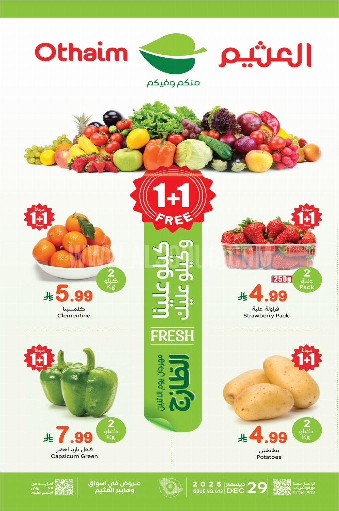 عروض العثيم مهرجان الطازج بتوفير 1+1 مجاناً – الاثنين 29 ديسمبر 2025 / 9 رجب 1447 هـ