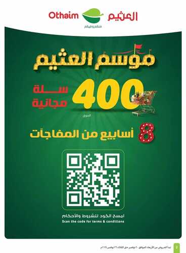 عروض العثيم الأسبوعية بصفحة واحدة 20 نوفمبر 2024 الموافق 18 جمادى الأول 1446 موسم العثيم مع 400 سلة مجانية