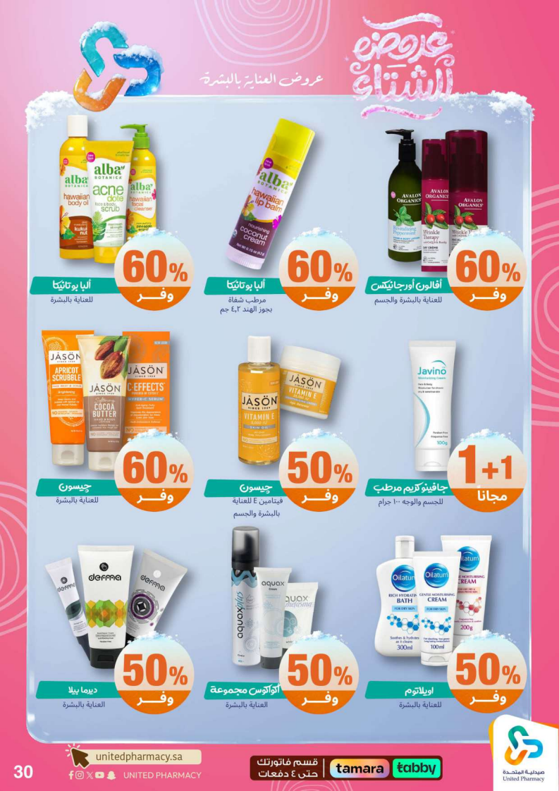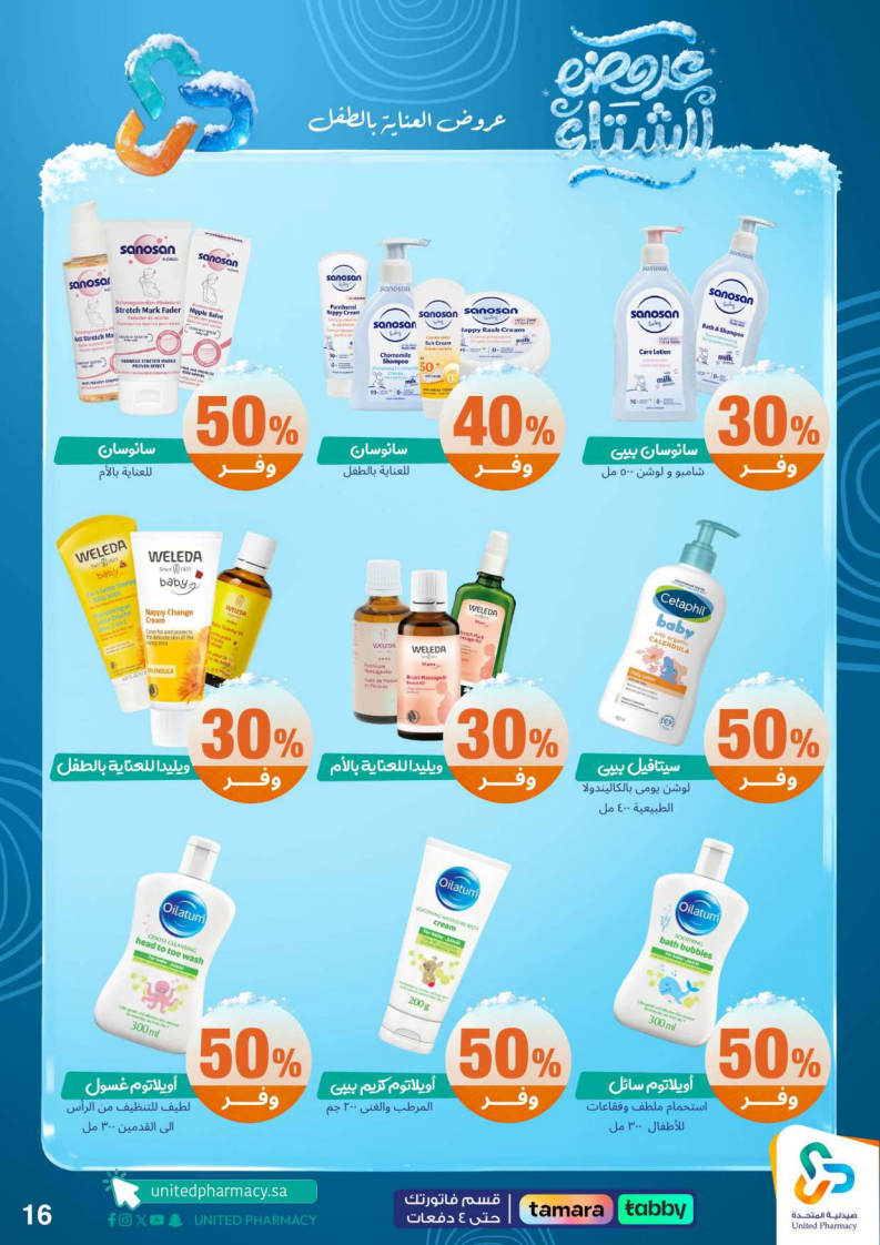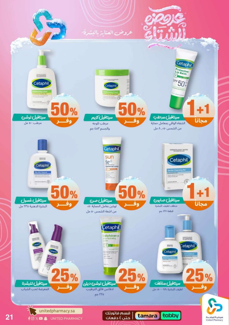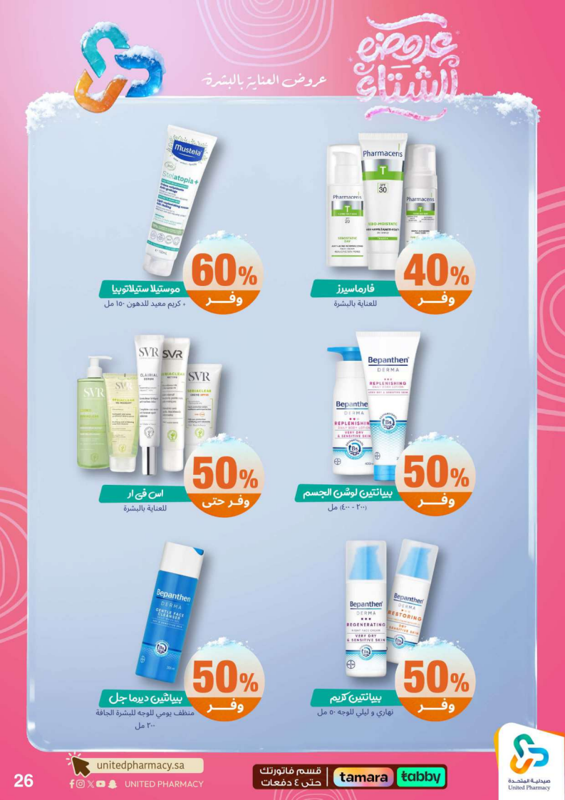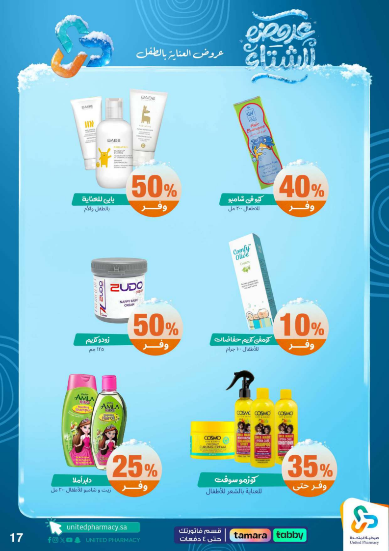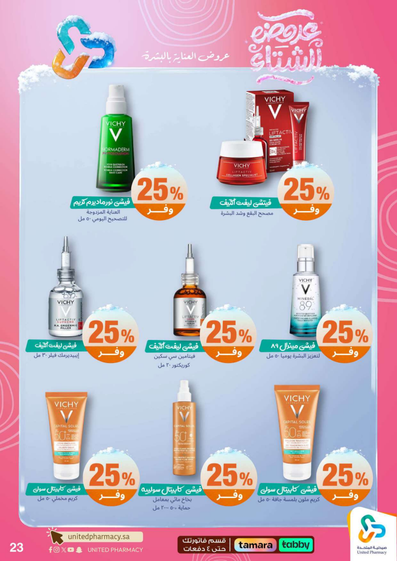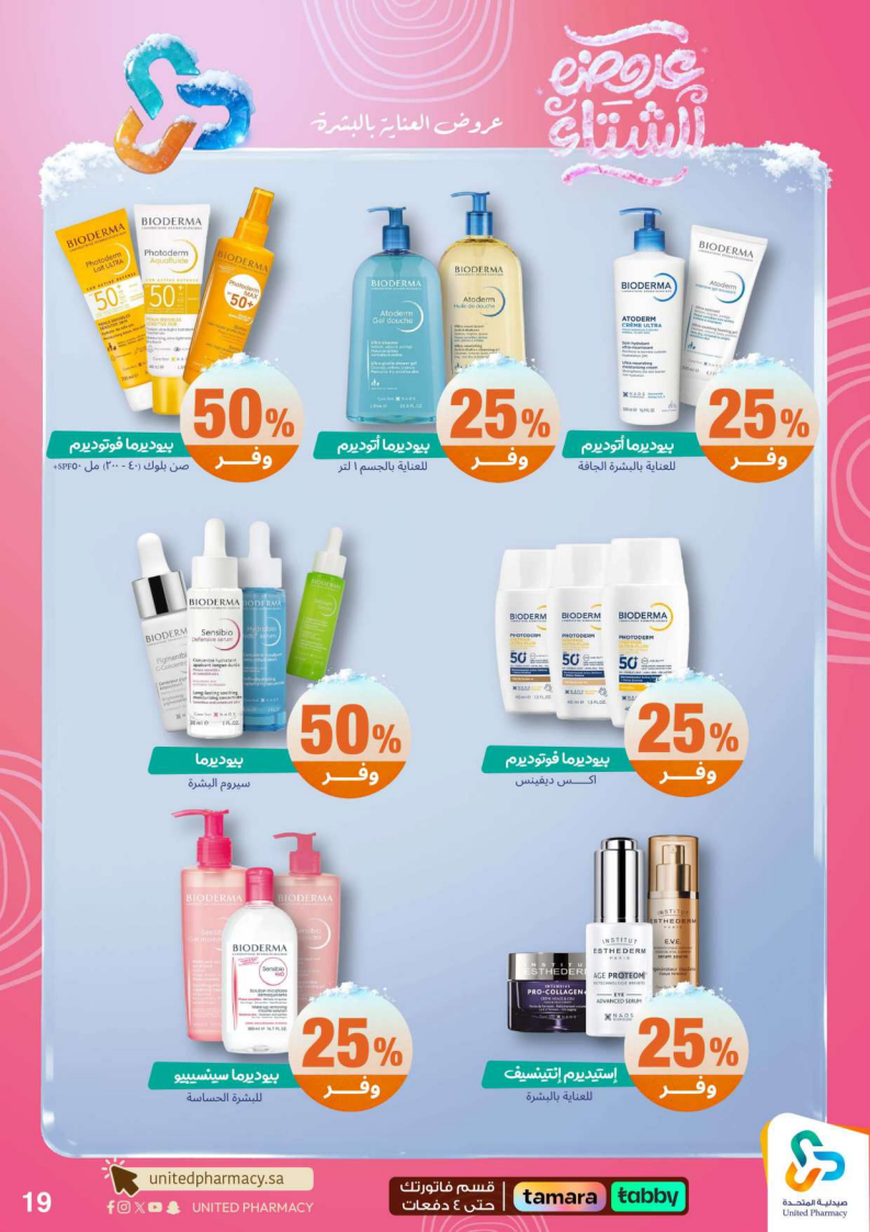 عروض صيدلية المتحدة الأسبوعية من 15 ديسمبر 2025 الموافق 24 جمادى الاخر 1447 عروض الشتاء . الجودة تصنع فرقاً والعروض تصنع قرارك! اختر الذكاء اليوم وابتسم للصفقة غداً. عروض صيدلية المتحدة اليوم الاثنين : تجدون ضمن منتجات الأسبوع: صانسيلك شامبو ٣٥٠ مل خصم على السعر . كذلك يوجد لوريال صبغة شعر اكسلانس . تريزمي شامبو ٦٠٠ مل . فوج او اوسوم عطر بخاخ ١٢٠ مل . كما ولدينا صابون ديتول ١١٥ جرام . سجينال مكافح التسوس ٥٠ مل ١٥ % . ريكسونا سبراي ١٥٠ مل . فريدا معطر جو ٤٦٠ مل . دوف رول اون ٥٠ مل . كلوز اب ١٠٠ مل و كلوزاب ٢٥ مل هدية .وإليكم الصور الآتية على موقع عروض.