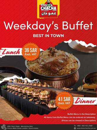 عروض المطاعم : مطعم عمو خان اليوم الاثنين 24 أغسطس 2020 – Weekdays Buffet