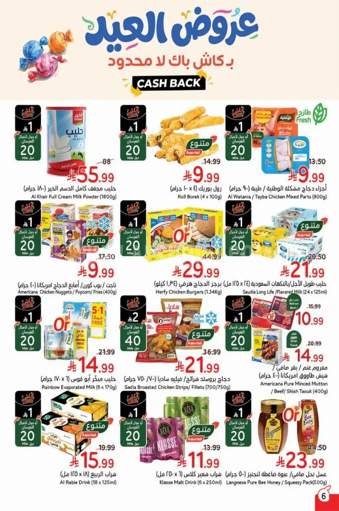 ابدؤوا تجربة توفير ذكية مع باقة اليوم من المنتجات المميزة التي انتقيناها خصيصاً لكم: فلاح كاجو أمريكي محمص بالقشر، تروبي حلوى طرية محشوة بالفواكه، حلوى فدج كريمية فاخرة، برياني دجاج ثالاسيري، وإليكم الصور الآتية على موقع عروض