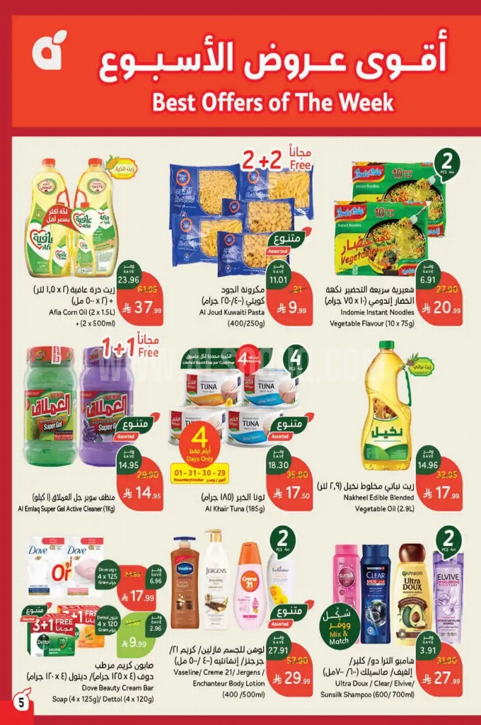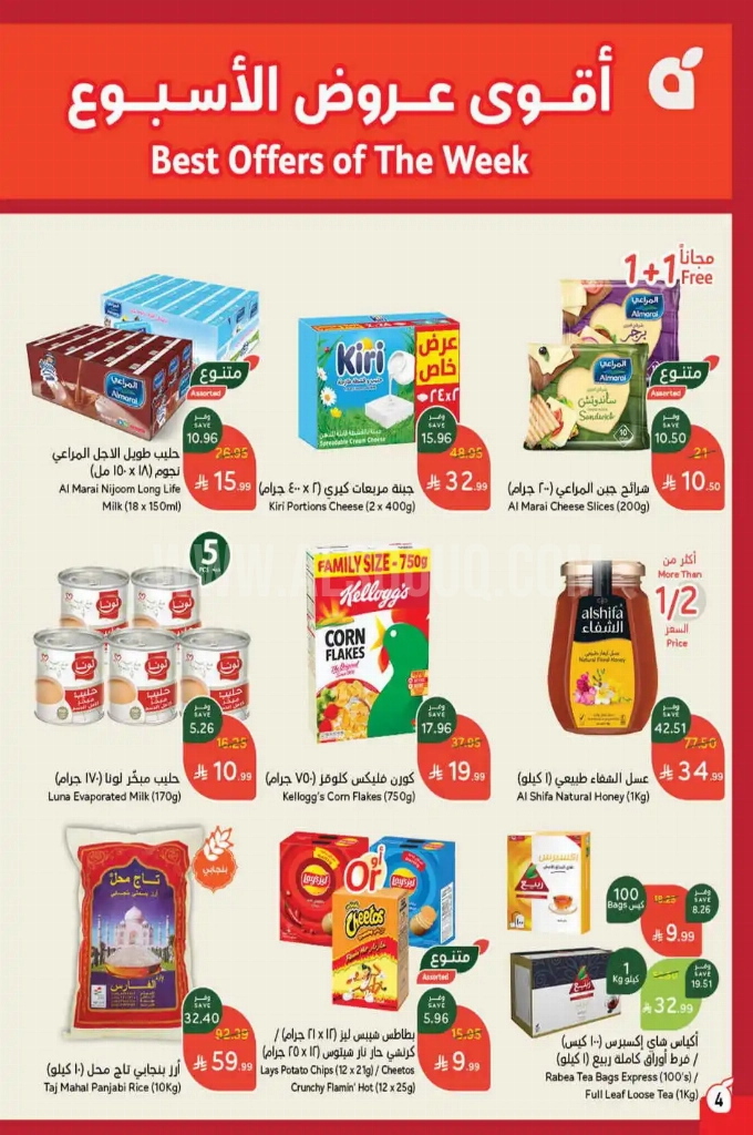 تجدون ضمن منتجات الأسبوع: مسحوق الكبسة، بودرة جرام مسالا، شطة، فلفل أسود، كمون، زنجبيل، كزبرة، كركم، بهارات برياني، بهارات دجاج، كاري، بهارات سمك، بهارات لحم، تفاح، كيوي، حليب مكثف محلى من حليب أبو قوس، نوتيلا، وإليكم الصور الآتية على موقع عروض