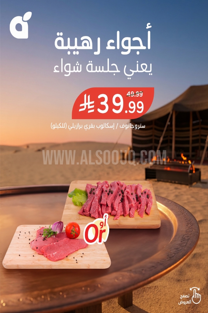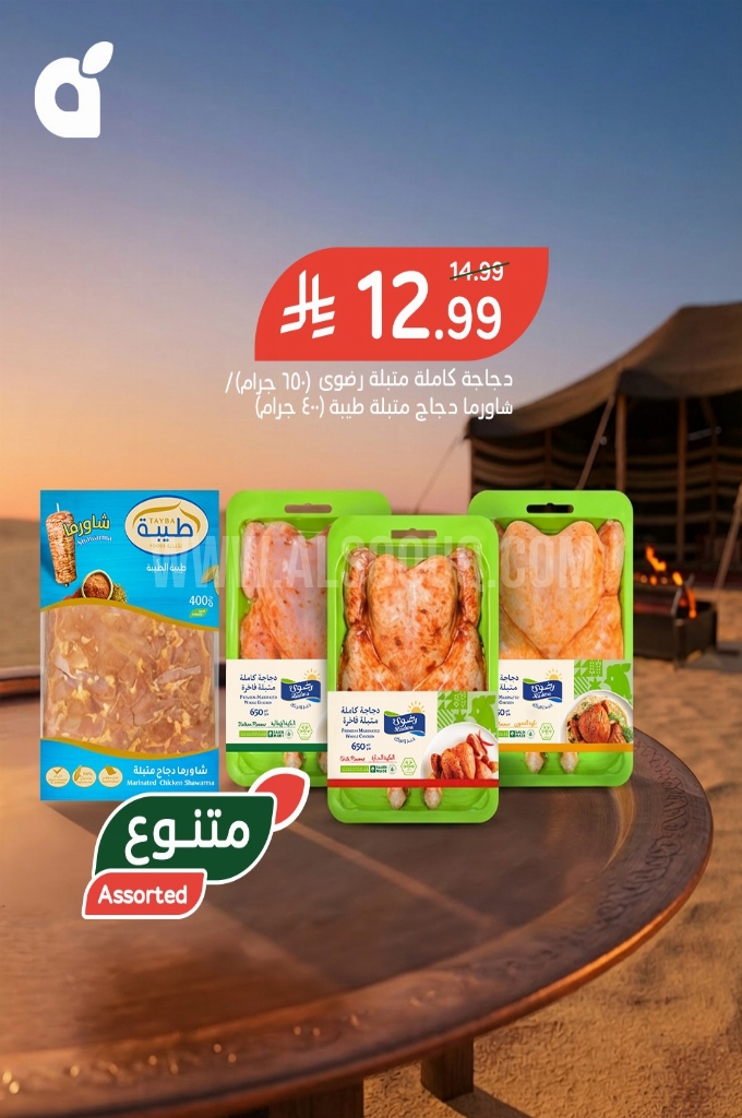 تجدون ضمن منتجات الأسبوع: استمتعوا بأجواء رهيبة مع ستروغانوف، اسكالوب بقري برازيلي، سجق، برجر بقري برازيلي، دجاجة كاملة متبلة رضوى. شاورما دجاج متبلة طيبة. خبز التورتيلا لوزين، كما ويوجد بطاطا محلي. وإليكم الصور الآتية على موقع عروض