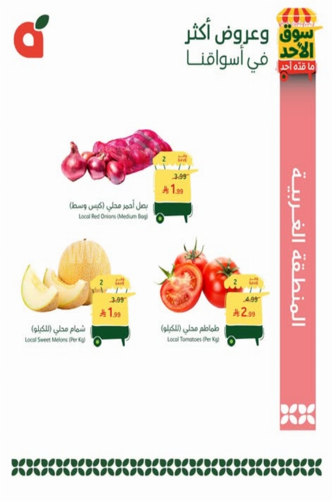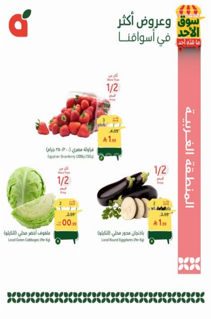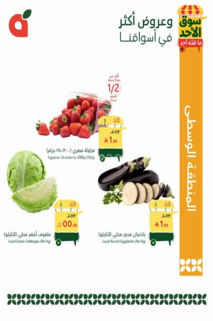 تجدون ضمن منتجات الأسبوع: بصل أحمر، موز، فراولة، تفاح، يوسفي، خيار، جزر، تمر، أرز بسمتي أبو كاس، حليب مجفف أنكور، حليب طويل الأمد، زيت دوار الشمس مستر شيف، جبنة مربعات كيري، شامبو هيد آند شولدرز بالنعناع، مسحوق غسيل تايد. كاجو، مكسرات مشكلة، لوز، فستق حلبي، جوز، طماطم، بطاطا، وإليكم الصور الآتية على موقع عروض