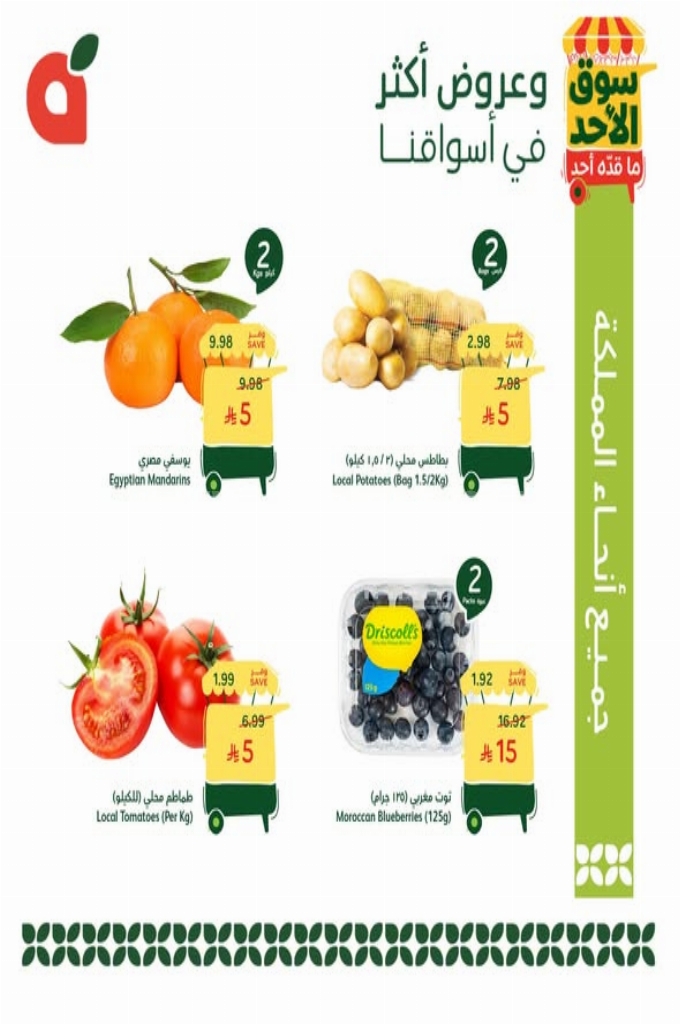 عروض بنده في سوق الأحد ما قده أحد 12 أبريل 2026 جودة طازجة وأسعار خيالية لمدة 24 ساعة فقط . استمتع بجودة طازجة وسعر خيالي مع فعاليات بنده، تخفيضات حصرية لمدة 24 ساعة فقط على المنتجات الطازجة.