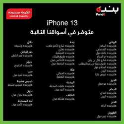 إليكم جوال iPhone 13 الجديد من آبل. كذلك متوفر حالياً في أسواق هايبر بنده المختارة بألوان وسعات متعددة. وكذلك سارع بزيارتنا الآن الكمية محدودة، لا تفوتكم .