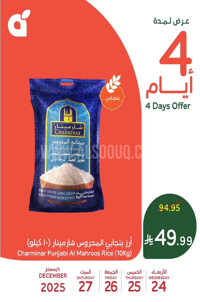 عروض بنده لمدة 4 أيام وحتى السبت 27 ديسمبر — تدور التوفير؟ إلحق عروضنا الحصرية الآن. استعدوا لموجة تخفيضات على السلع الأساسية والمنتجات اليومية. لا تفوت فرصة التوفير واستمتع بأسعار منافسة لفترة محدودة تناسب جميع الميزانيات.