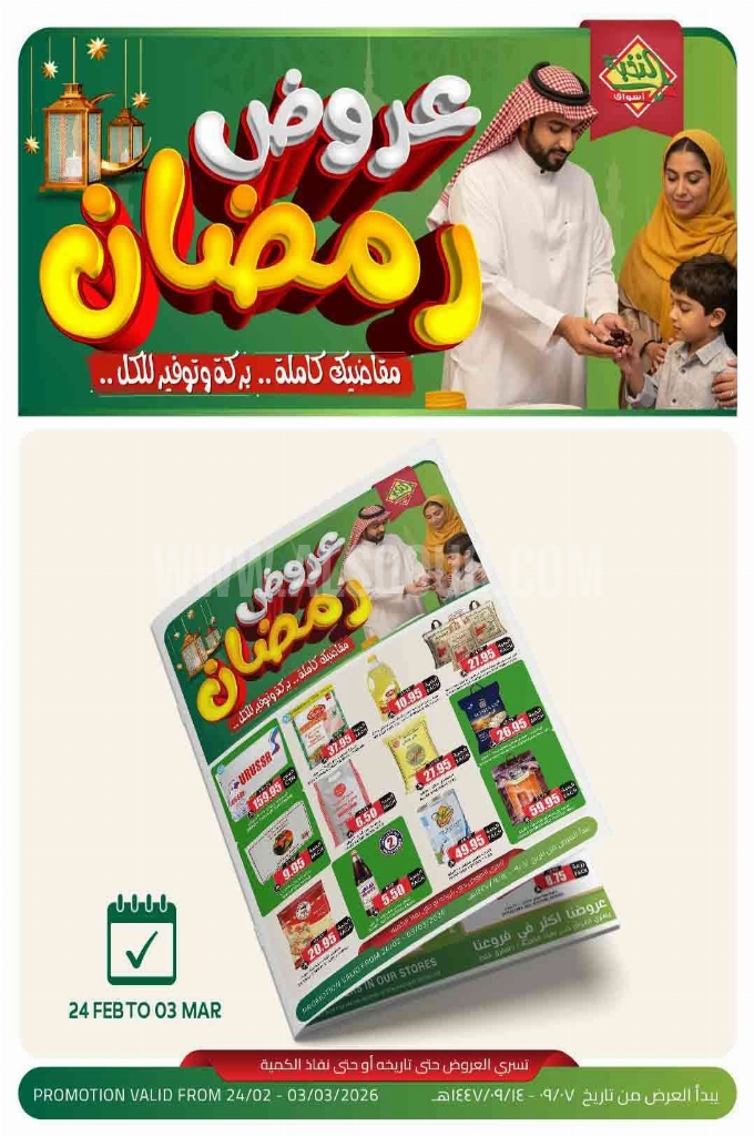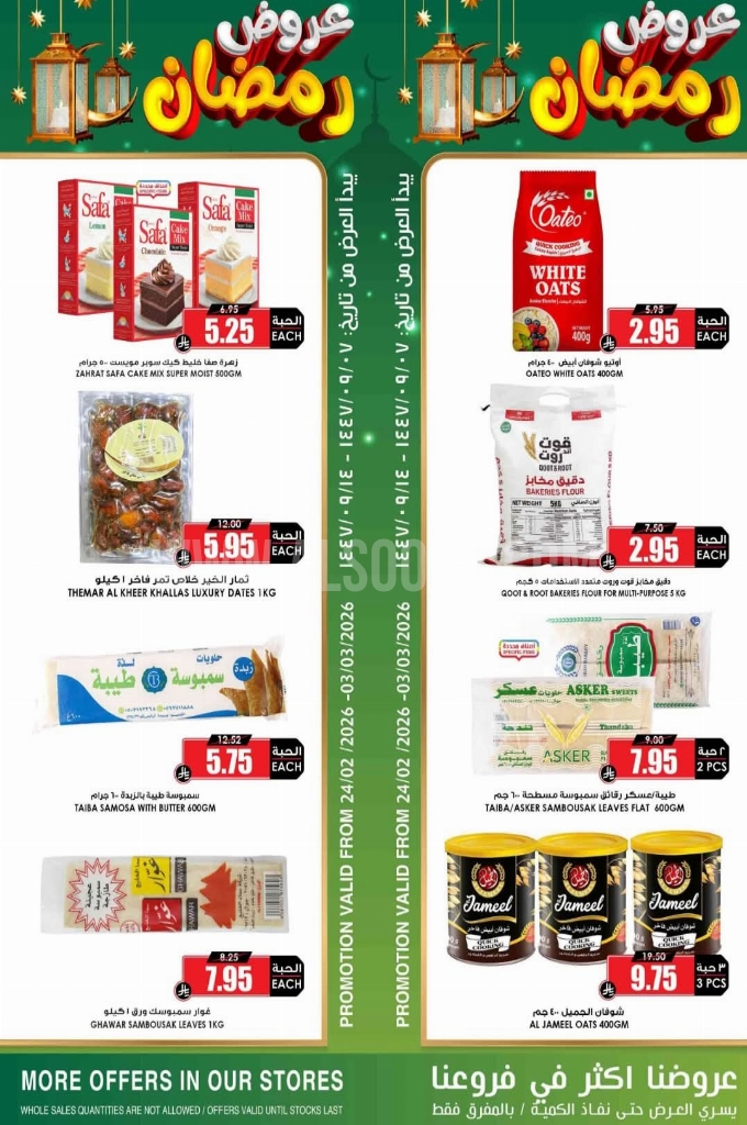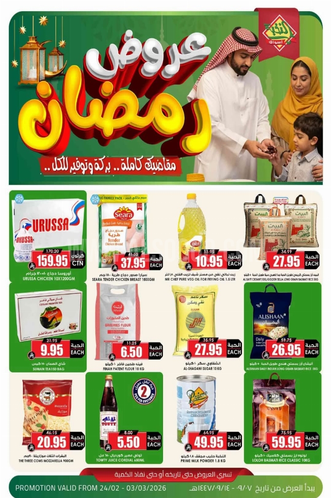 لجعل مائدتك عامرة بالخير دون إرهاق ميزانيتك. نقدم لكم القائمة الشاملة لأقوى عروض الموسم على السلع الأساسية والمستلزمات اليومية. تسوق الآن بذكاء، واستثمر في الجودة التي تستحقها عائلتك بأسعار لم يسبق لها مثيل. بركة الشهر تبدأ بتخطيط سليم!