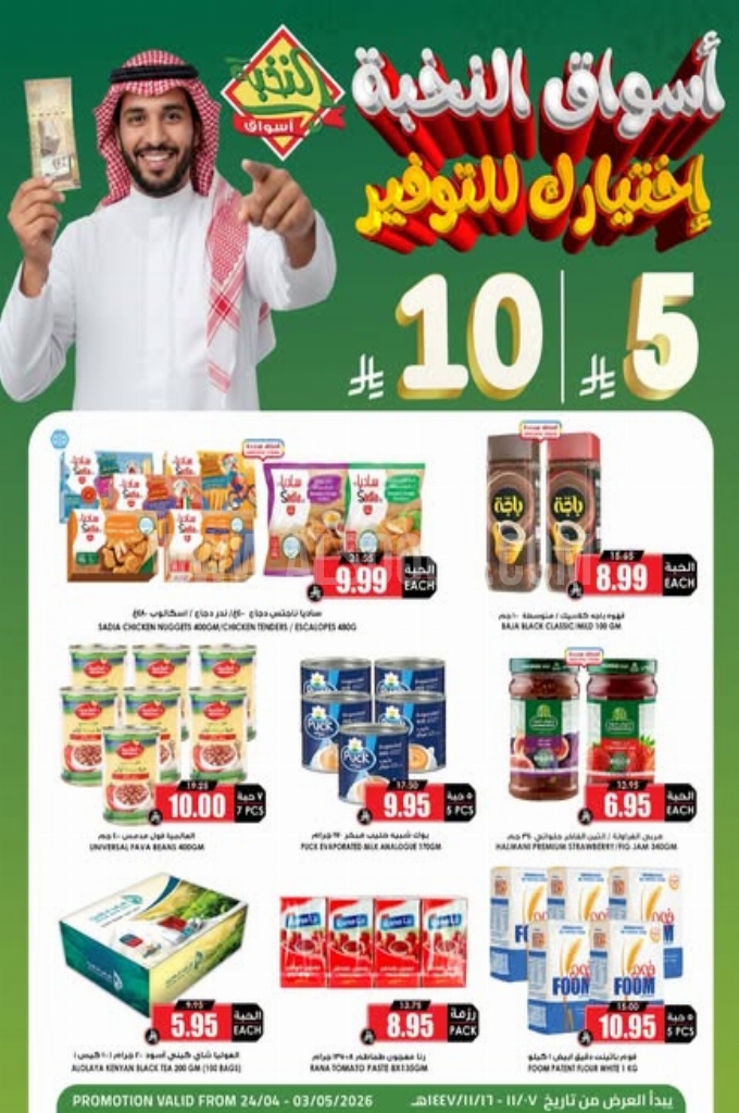 نسكافيه كلاسيك، مكسرات مشكلة إكسترا، مكسرات مشكلة مملحة، قهوة جراندورو كلاسيك، سمك الميد الكبير، روبيان وسط، سمك السلمون النرويجي الكامل، سمك بياض (تونا) صغير، سمك باراموندي، سمك نيسر، سمك التونة السوداء الصغيرة وإليكم الصور الآتية على موقع عروض