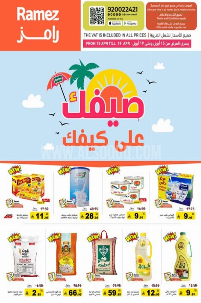 عروض رامز الدمام اليوم 15 أبريل 2026 الموافق 28 شوال 1447 عروض صيفك كيفك . استعد لخصومات مذهلة وصفقات لا تقبل المنافسة تسوق منتجاتك المفضلة بأسعار لا تقاوم.