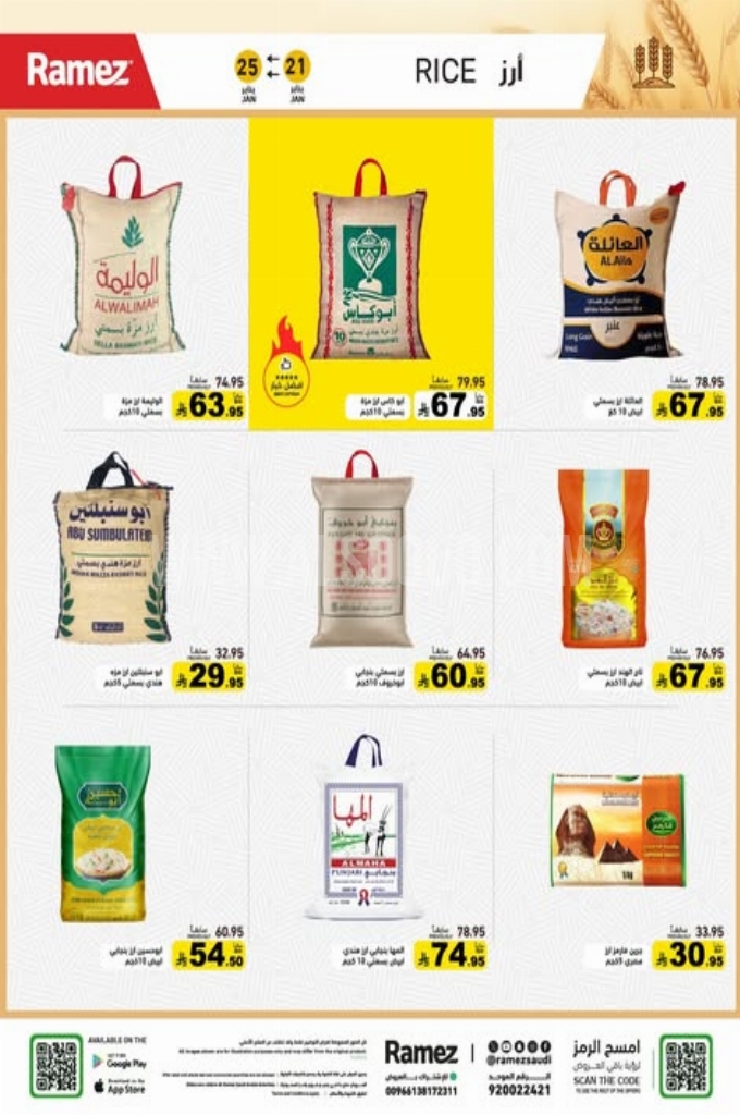 أرز صن وايت أرز مصري، سمك سلمون كامل نرويجي، فيليه سمك سلمون طازج، سلمون مكعبات متبل، سمك رنجة مدخن، روبيان وسط، روبيان منظف، روبيان كبير، روبيان متبل، أرز مندي باللحم البقري، دجاج هندي نصف حبة مع أرز، أرز بالزبدة مع كاري لحم وإليكم الصور الآتية على موقع عروض