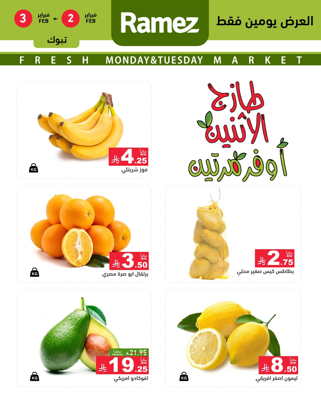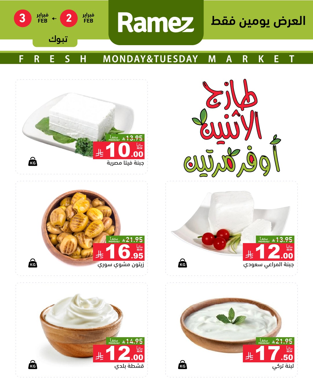 عروض أسواق رامز اليوم 2 فبراير 2026 الموافق 14 شعبان 1447 رمضان كريم.عروض توفير جديدة على المنتجات اليومية بأسعار منافسة وجودة مضمونة لتجربة تسوق ذكية وتوفير حقيقي لكل الميزانيات.