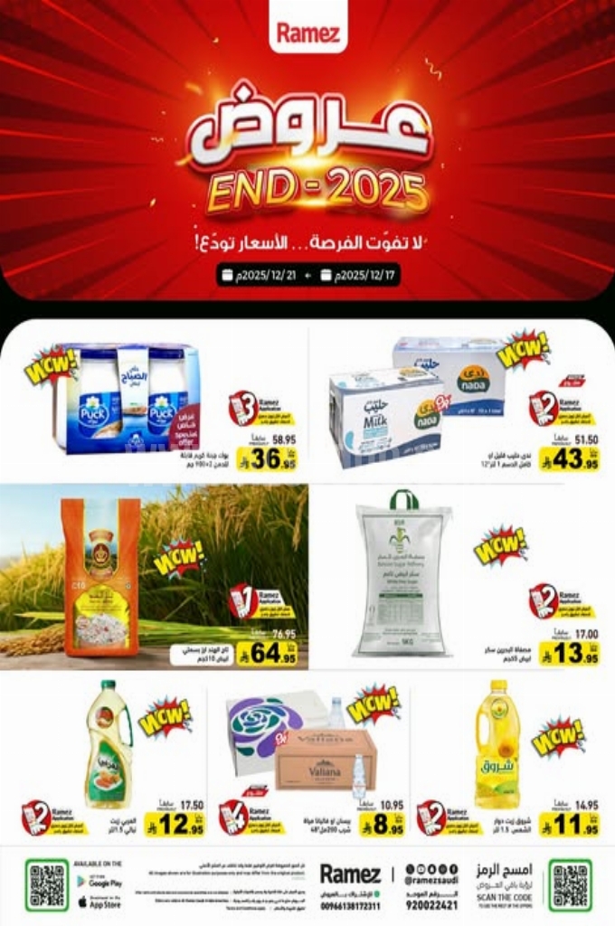 عروض رامز الرياض اليوم 16 ديسمبر 2025 الموافق 25 جمادى الاخر 1447 عروض نهاية العام . استعد لخصومات مذهلة وصفقات لا تقبل المنافسة تسوق منتجاتك المفضلة بأسعار لا تقاوم.