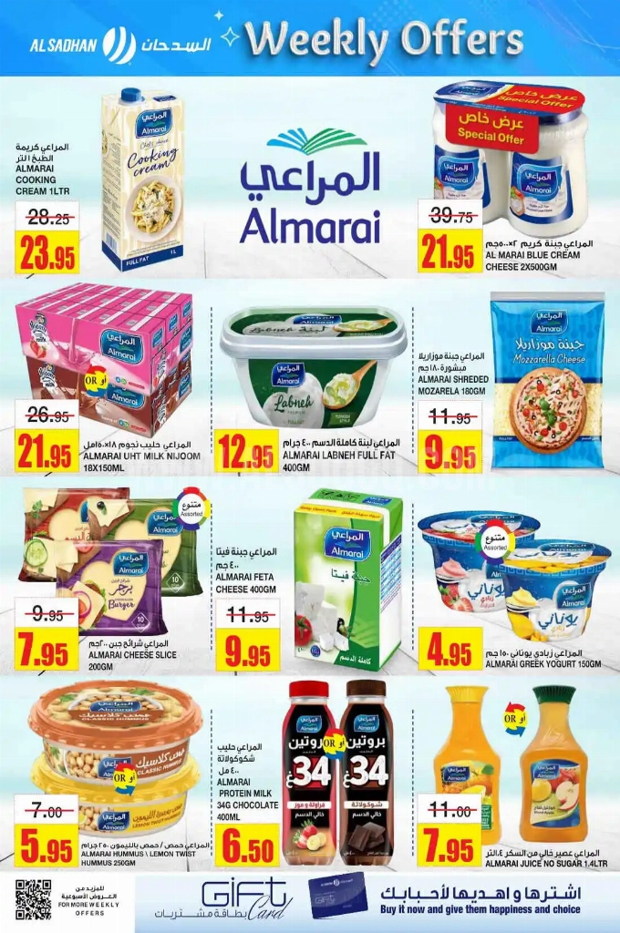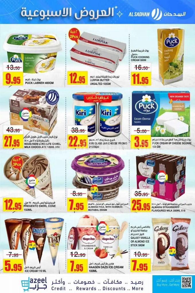 تجدون ضمن منتجات الأسبوع: جبنة بوك مربعات 24 قطعة, كريمة طبخ بريستين 1 لتر, جبنة المراعي موزاريلا مبشورة 500 جم, زبدة المراعي طبيعية 2 × 100 جم, زيت جوز الهند لولو 1 لتر, زيت دوار الشمس لولو 4 لتر, أرز برياني البلاذ 5 كجم, وإليكم الصور الآتية على موقع عروض