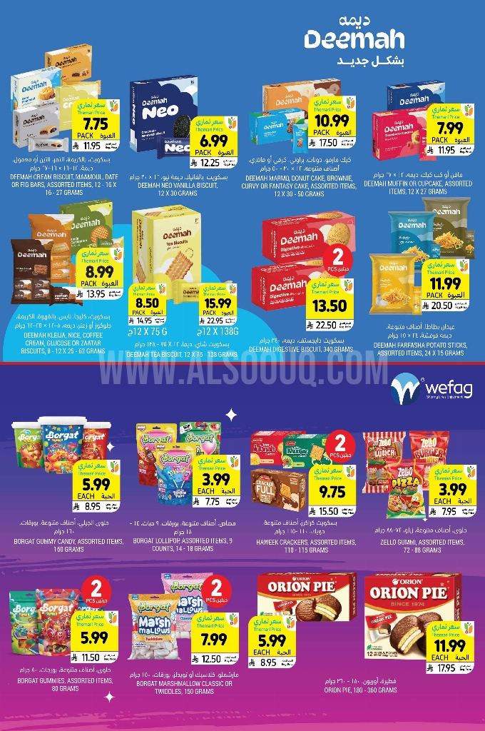 تجدون ضمن منتجات الأسبوع: حليب الصافي كامل الدسم، رقائق ذرة كيلوجز، كوكيز زبدة أمريكانا، تمر المحمدية، مربى حلواني إخوان، مربى كريستال، جامون ديسيرت جام، شوكولاتة أوريو سيلينا، ديري ميلك بابلي، وإليكم الصور الآتية على موقع عروض