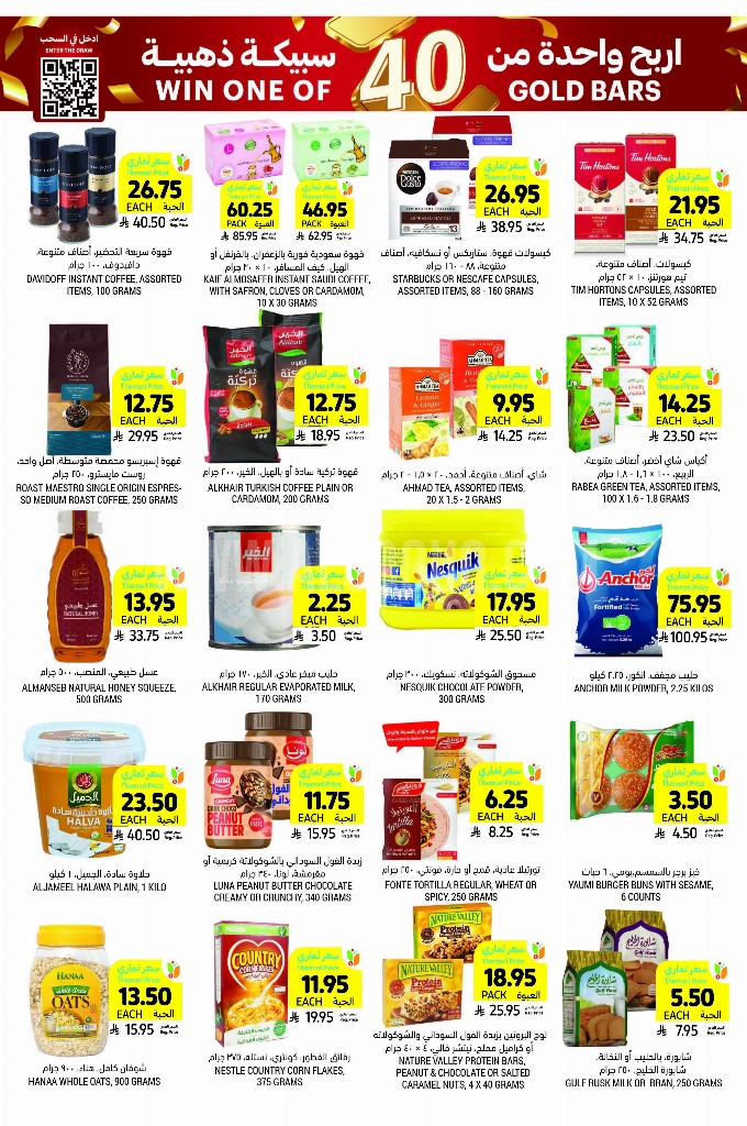 عروض التميمي الدمام والخبر الأسبوعية 8 أكتوبر 2025 الموافق 16 ربيع الآخر 1447 العروض الأسبوعية. تخفيضات مستمرة على كل ما تحتاجه لبيتك ومطبخك مع أسعار تناسب ميزانيتك وعروض ما تتفوت. عروض التميمي الدمام لهذا الأسبوع: تجدون ضمن منتجات الاسبوع: حلويات أنطوانيت شوكولاتة مشكلة 500 جم, زبدة فول سوداني مورفي 510 جم, حلوى ديمه لولي بوب 250 جم, شوفان كويكر 500 جم, ويفر رولانا 150 جم, بسكويت دايجستيف تي شوب 100 جم, بسكويت تي شوب ويفر 185 جم, وإليكم الصور الآتية على موقع عروض